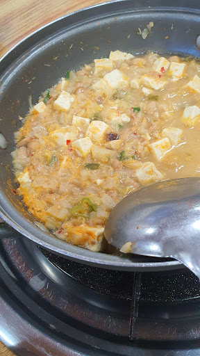 청국장은 맑고 깨끗한(?)스타일입니다. 청국장의 양은 넉넉하고, 인원수대로 시키면 리필도 친절하게 해주십니다. 비벼먹을 수 있는 대접도 주시고요, 테이블마다 기름과 고추장이 놓여있고요. 고추장은 살짝 텁텁한 느낌이 나쁘지 않지만, 개인적인 취향에는 맞지 않았습니다.