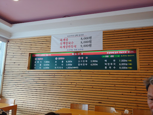 Read more일단 메인 메뉴이고요. 곱베기랑 보통이 있습니다. 곱베기는 오늘 날짜로 가격이 7500원이고 보통이 6500원이에요. 전 갈비만두도 시켰는데 가격은 까먹음... 비빔국수와 만두를 같이 먹으면 아주 맛있습니다. 그리고 맥반석 계란도 카운터에서 파는데 개당 700원이었음.. 좀 비싸지만 한개사서 비빔국수랑 같이 먹으면 꿀맛^^ 아 그리고 여름에는 콩국수도 게시하네요^^ 육계장이랑 육계장 국수도 팔던데 못먹어봤습니다. 다음에 방문하게 된다면 육계장 국수를 꼭 먹어보고 싶네요. 아 그리고 요금은 선불입니다!!! 참고 하시기...