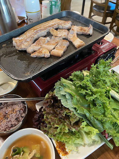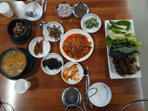 This is a popular local restaurant served very traditional Korean food. I came here after my golf at Yongin CC. If you can take the smell of the fermented bean paste, you can come for sure as it was rather strong. Served the river snails with fermented soy bean, wrapped with stir fried pork kimchi and lots of varieties of green .. super yummy. The tofu kimchi soup was great and you have to mix with the healthy brown rice. We also ordered some bbq pork and just average as the meat is rather hard and chewy. Pairing with Makgeolli is the way to enjoy this meal. Price is reasonable and great service.. hard to find the limited parking lots but you better can speak basic Korean for you to order the food. Else, do google translate so you know...