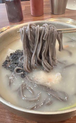 #옹심이 #칼국수 뿌연 국물이 사골국물인가 했는데 고소한 크림스프 같은 것이 해물이나 고기육수가 아니다. 나중에 여쭤보니 감자물! ㅎㅎ 감자 요리집의 진수가 아닌가?