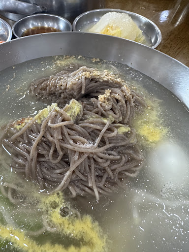 식전에 주시는 육수가 맛있어서 엄청 기대하고 먹었는데 동치미막국수 맛이 엄청 밍밍해서 읭??? 이라는 표현이 자동으로 나옴. 같이 나온 비빔막국수랑 메밀고기만두는 맛있었음!!! 저처럼 자극적인 맛을 좋아하시는 분들은 동치미막국수에 양념장, 식초, 겨자소스를 좀 더 첨가해서 드시는 걸 권함 + 주차공간은 매우...
