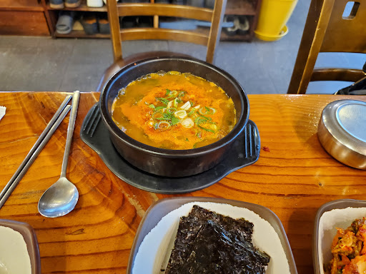 Korean style beef hot pot for one or many. Non spicy or spicy. Wheelchair access from the door at the back but when a car park there it'll be a little challenge. When take away, ask cooked rice as well. Price has slightly been increased from the registered photos. Kimchi and kkakdugi are a little bit sweet but...