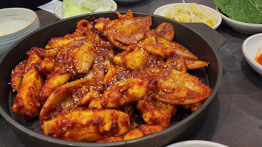 Read more성인 남자 둘이 방문해서 갑오징어 삼겹으로 2인분 주문해서 먹었습니다. 제가 맵찔이라 좀 걱정했는데 다행히 캡사이신 들어간 매운맛이 아니라 고춧가루 매운 맛이라 맛있게 먹었네요 ㅎㅎ 셀프바도 잘 되어 있어서 부족한 반찬 가져다 먹을 수 있어 편하고 저같이 맵찔이 이신 분들은 콩나물 넣어서 쌈싸 드시는 걸 추천합니다. 그리고 마지막은 볶음밥에 치즈 추가해서 꼭 드세요!! 소주 4병 순삭입니다ㅎㅎㅎ 전체적으로 신규오픈점이라 매장도 깔끔하고 주차도 편리하며 맛도 훌륭합니다. 다음 방문때는...
