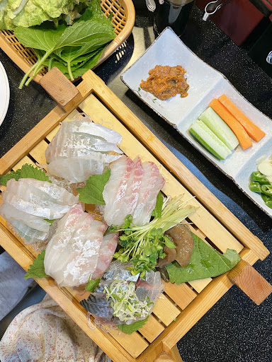 광어 초밥을 시작으로 도미와 다른 생선회를 먹었습니다.