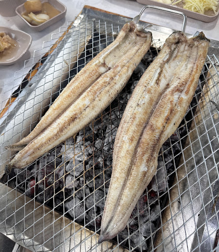 Great eel, and awesome service. It was less than 2 minutes from the time we sat down to when the hot coals and the eel was already on the grill cooking, and all of the side dishes. The place is massive and can hold a lot of people. Eel is all they do, and it is a must. Friendly staff and attention to detail. It is a nice experience. I'm a foreigner and this place treats you...