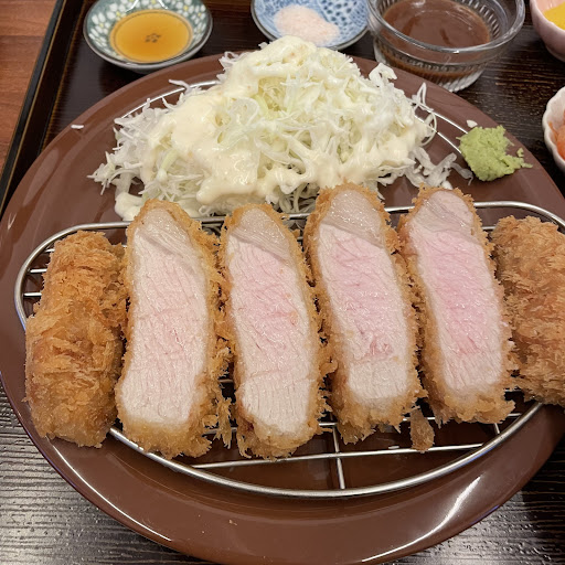 A small tonkatsu place in town. Tonkatsu is compromised of thick meat, with somewhat of a light batter & crunch.