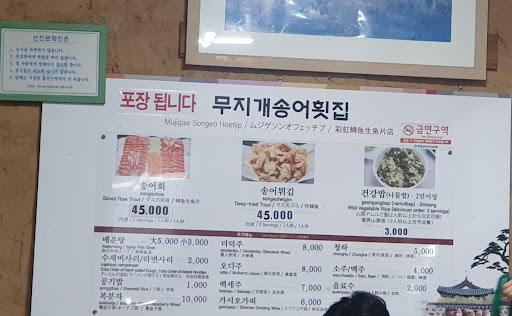 Read more계방산 아래 무수히 많은 송어횟집 중 가성비 최고 가격이 저렴해 양이 적을거라 생각하면 큰 오산. 회로 먹고 비벼 먹어도 둘이 먹다 남았다. 마지막 매운탕 국물은 JMT 이다. 평소 비린 냄새때문에 매운탕 쳐다 보지도 않는데 그날 5번 리필해 먹었어요....