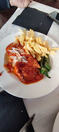 Páramos a comer allí!! Como lugar es grande amplio se veía limpio y con buen ambiente. Nos atendió la camarera muy maja y nos trajo la carta del fin de semana 22€ que entraba 1-2 postre O café. Como menú de fin de semana nos pareció calidad precio un poco cara y pésimo, como calidad de comida. Por qué cantidad bien. Yo en este caso pedí pimientos rellenos de carne con salsa de hongos (LOS PIMIENTOS ERAN 4u CONGELADOS Y LA SALSA ERA NATA CON HONGOS QUE TAMPOCO TENIA SABOR NINGUNO) Para mí era pésimo. De segundo pedí churrasco. Churrasco a su punto y adobado con patatas y dos pimientos verdes Yo pensaba que el churrasco no llevaba adobo pero en este caso sí tenía mucha grasa a mí gusto se podía comer pero precio menú calidad deja que desear. Mi pareja de segundo podio bacalao al horno con salsa de tomate y estaba seco por fuera y frío por dentro Postre el pidió un milojas de nata y estaba dura la miloja pasada y yo me pedí tarta chocolate de la abuela que sin más para mí gusto empalagosa. Sorpresa con el pan que nos trajeron el cerdito con un pan sin miga, hueco...