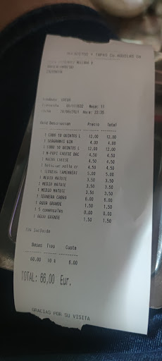 Read moreDecepcionado de los precios y reparto a domicilio. Un solo bocadillo de tortilla simple ni patatas ni nada, tomate y jamón york 7 euros más el un euro extra por el servicio a domicilio, por algo más grande que sea la barra de pan. Os puedo decir unos cuantos locales por donde 3 o 4 euros tenéis a domicilio verdaderos bocadillos estupendos y bien cargados. Si ya 5 euros por ese bocadillo era casi para decir; quédatelo, encima al llegar a casa dicen que es 2 euros más caro... excusa? que lleva tomate y jamon york a también. No le dijimos que se fuera con el bocata por que ya estaba allí, que por mi lo hubiera hecho, pero así no van a ganar muchos clientes...desde luego nosotros y los conocidos a los que se lo digamos, a domicilio, los han perdido. Ahí tenéis el bocadillo de 8 euros con...