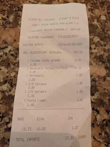 Read moreBuenísimo servicio camarero de primera muy buen trato y todo espectacular es muy atento le deje 2 euros de bote y me arrepiento de no haberle dejado más es de lo mejor que he conocido en águilas ojala y este para siempre ahí muy buena comida...