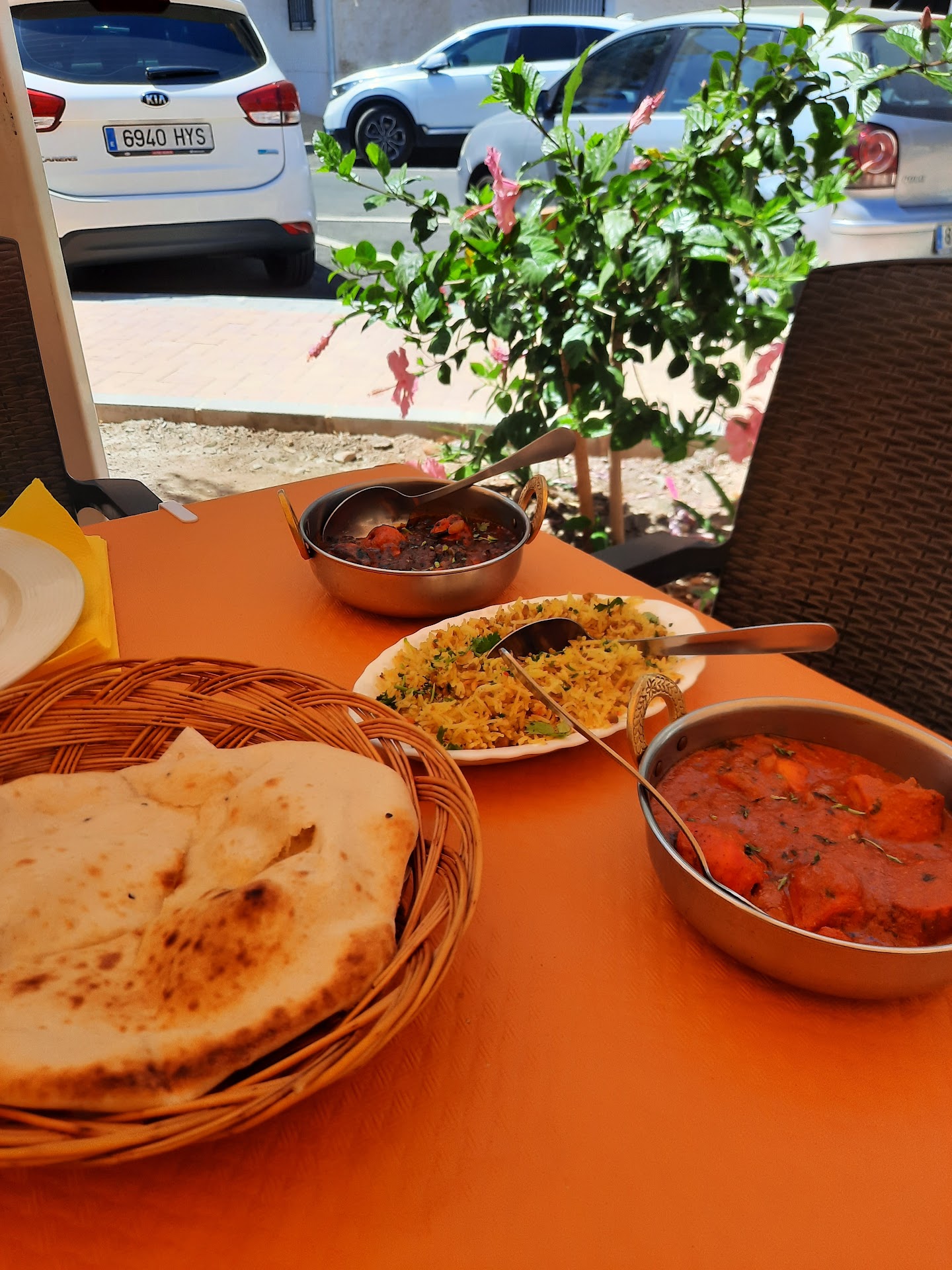 Read moreAnte todo he de decir que el servicio y el trato del personal fue excelente y correcto. Conozco muy bien la cocina India y en esta ocasión diría que la han intentado europeizar mucho para que a los paladares Españoles les resulte más agradable, sin embargo de los 4 platos principales que pedimos solo uno de ellos cubría nuestras expectativas, los demás eran muy insípidos y las raciones increíblemente escasas para costar 9 euros y eso sin la salsa , que te la cobran a parte y eso sin el arroz de acompañamiento que te lo cobran a parte y eso sin el pan que te lo cobran a parte ... 4 personas comimos poco y sin mucho placer no tomamos postres no repetimos bebida ni pedimos vino ni extras ... 80 y pico euros ... No se cómo lo verán ustedes pero con ánimo de crítica constructiva, bajense de la parra por dios . Si lo sé me preparo una mariscada y me pongo morado a gambon rojo... Me parece súper indignante que se paguen estos precios por un puñado de arroz y literalmente 4 trocitos de pollo insignificantes en una cazuelita super pequeña. Me sabe mal dejarles esta reseña por qué fueron muy amables pero jamás volveré a este lugar, ni por la calidad de su comida , ni por las raciones , ni por el sabor e indudablemente ni por sus precios. Ojala sean capaces de cambiar y mejorar para ofrecer algo mejor... me da que lo van a necesitar ....