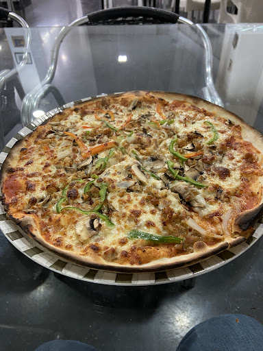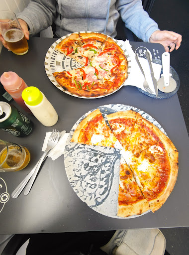 Fuimos aquí por primera vez ya que nos apetecían unas pizzas para comer y la mayoría de las pizzerías abren por la tarde/noche. La chica que nos atendió fue muy amable y nos atendió desde el primer momento que llegamos sin sentirnos incómodos. También nos aconsejó que podíamos pedir y gracias a eso cambiamos nuestra elección por una parecida que nos convenía más. A mí personalmente me gustó que todas las pizzas costaran lo mismo independientemente de sus ingredientes. Pudimos esperar sentados en una de las mesas del interior mientras preparaban nuestro pedido. Pedimos unas pizzas medianas para llevar: una barbacoa, una di mare y la especial de kebab; junto con dos latas de refresco y unas patatas fritas. Todo esto por 22€ y estaba delicioso. Sobre todo la pizza de kebab. La masa increíble, a pesar de ser fina no estaba dura como otras pizzas que hemos probado. Incluso los bordes de la pizza estaban deliciosos. El local estaba super limpio y los empleados que preparaban la pizza llevaban guantes. También se estaba muy tranquilo todo y atendían con rapidez y gran atención a los clientes. Sin duda...