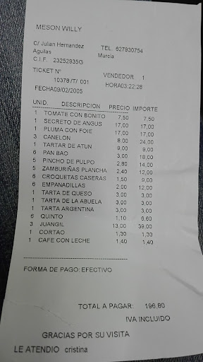 We stayed in Aguilas for over a month and had a lot of great food, but Willy’s was the only place we went back to more than once! We don’t speak a lot of Spanish, but our waitress and Willy both made us feel very welcome and the service was great. All the food was incredible, very interesting and diverse - you can tell it is made with love! We would definitely recommend Willy’s to anyone and everyone, and if we’re ever back in Aguilas we will...