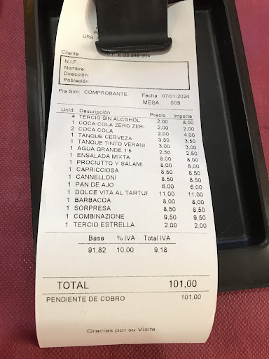 la adición está en la norma y muy buen servicio un camarero muy agradable y el jefe un hombre amable y muy agradable