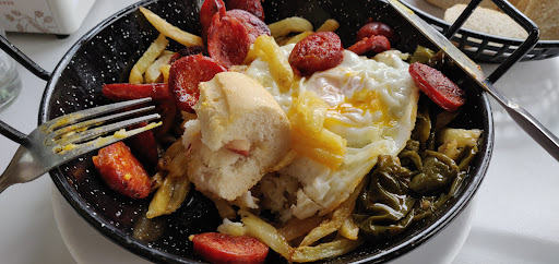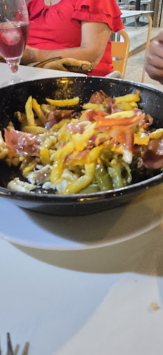 Read moreAtención agradable, aunque no supieron respondernos algunas dudas que teníamos de la carta. 🥗 Ensaladilla rusa: Estaba buena, bastante correcta. 🥓 Panceta aliñada de pepa: El aliño bastante rico. 🧆 Croquetas caseras de pepa: Se nota que son caseras. Masa un poco apretada. Sabor suave. No encuentras ningún trocito en el relleno. 🍲 Carrillada ibérica de pepa: Muy bueno. La carne bastante tierna, y la salsa de toma pan y moja. 🍳 Sartená de chorizo: No lo recomendaría en relación calidad/precio. Lo peor ha sido la mezcla de patatas fritas, en la parte superior menos fritas (aunque recién hechas), pero las de la parte inferior, un aspecto (y sabor) muy diferentes, como más refritas. Lleva un par de huevos fritos. 🍷 Vino dulce: Muy rico, bastante dulce, aunque alguna de las copas que pedimos tenía bastante zurrapa en la parte inferior. 🥤 Se pidió fanta naranja, y trajeron kas. (podrían haberlo avisado) 🚻 Baños muy estrechos.