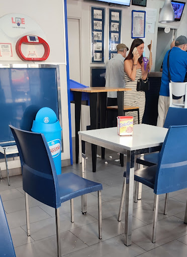 Neighborhood breakfast and coffee spot. Very busy in the morning. Ordered drinks and food at the bar, to take them to the terrace outside. Great coffee, toast and churros for a reasonable price....