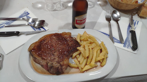Super local joint. Do not be fooled by the simplicity of the exterior or interior. You walk in and it looks like an old workers bar. But go sit downstairs and let the waiter, who is also the barman take your order. And just sit back relax and watch the food come flood the table. Simple, tasty and almost embarrassing how cheap it was. The chuleton is the size of one's head and you won't find a more inexpensive place to get this dish. And they do it extremely well, the meat it tender and full of flavour. The beer is cold and the bread is comforting. Forgot to take pictures of the desserts but we got those too, and it all cost...
