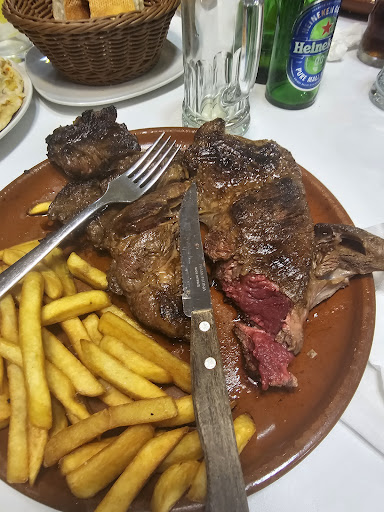 Read moreFue una mala experiencia, aunque las fotos pudiera decir otra cosa. Empiezo por la comida. Escogimos comer el menú, donde se podía elegir varios primeros y varios segundos. Las expectativas estaban en el Chuletón, por eso de que en el cartel ponía que era para compartir con un suplemento de 5 euros. Llegaron los primeros, primera en la frente, mis patatas revolconas estaban insípidas, sin sabor, en la foto se ve que no tenían ni color a pimentón típico y los torreznos faltos de cocinar, parecían chicles. Entre platos todo estaba amenizado con broncas, de la que parecía la dueña, al personal. Llega el segundo, el chuletón( nada de a la brasa) estaba sin cocinar, el interior estaba crudo, tanto como que estaba frio, como recién sacado del frigorífico, incomible. Pedimos que le dieran calor y cuando vuelve a salir, claramente se ve que han metido plato entero, con sus patatas, al horno, dando como resultado que las patatas se churruscaran, pero el chuletón seguía helado, momento en el que sale el cocinero y nos dice que es culpa nuestra xq teníamos prisa(nada de eso) y no lo ha podido atemperar como se debe. Le pido que lo pase por la plancha para poder comer algo, por segunda vez. He de decir, que allí era constante la ida y venida de chuletones a la cocina de otras mesas. La tarta de queso muy, muy básica y en un baño de mermelada muy desagradable. Cómo remate, resulta que el plus de 5 euros por pedir Chuletón, recuerdo que a compartir, se incrementa 5 euros a cada menú, fue todo un despropósito y a un precio de carta de cualquier restaurante de categoría y no en un bar con salvamanteles de papel con publicidad de Pepsi.. yo no...