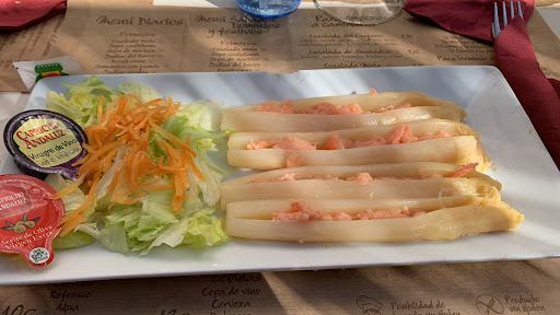 No lo recomiendo, puffff fatal, menú a 10€ vale perfecto, entramos y parece un restaurante de carretera, pero bueno para gustos los colores, no dan mesa, más de 10 minutos para tomarnos nota, (siendo en ese momento lo únicos en el local), otros 10 minutos para traernos la bebida, otros tantos o más para el primer plato, mi marido y uno de mis hijos, piden judías de Ávila, servidas en cazuela de barro calentadas en microondas por como venía la cazuela de barro como si se les hubiera salido, mi otro hijo espaguetis, bueno más o menos y yo patatas revolconas con torreznos, eso era puré de patatas con un poco de pimentón y tres trocitos de torreznos minúsculos y añejos 🤮, segundos platos, dos piden costillas con barbacoa, puffff quemadas no lo siguiente, se le dice al camarero y como el que oye llover, ni se lo cambio, ni lo siento, ni nada, otro pide escalope de ternera con patatas, el escalope bañado en aceite y yo merluza, congelada y calentada en microondas y con no muy buen sabor, postres helados derretidos, y flan casero, pero no de ellos de Mercadona. Y la atención malísima, por 10€ no pido manjares, pero si una comida decente y una atención agradable. Mejor no vayáis nunca...