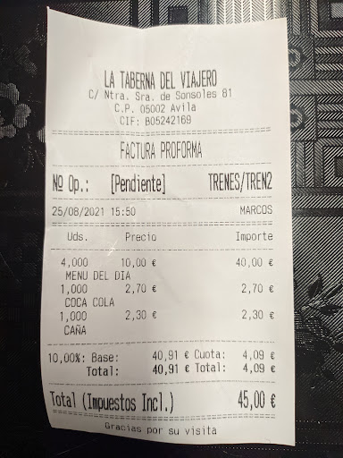 Read moreNo volveremos ni regalado. Debería llamarse la taberna del viajero Irlandés, ya que así está decorada, con gusto eso si, pero a Pub Irlandés. Hemos entrado a comer 4 personas. Nos recibe un chaval sin muchas ganas. Pides la bebida y no te trae ni unas patatas. El menú es barato, 10 euros entre semana y que conste, que yo no he puesto el precio, lo han puesto ellos. La comida deja mucho que desear. Las judías del barco, las han calentado claramente en un microondas, todo el borde del cuenco reseco y la capa superior reseca. Las revolconas, parecían haberse revolcado bien y haberse convertido en puré de patata, con tres trozos de torreznos con sabor a rancio. Las costillas, quemadas por arriba y más todavía por debajo, la merluza parecía que acaba de salir de un cuenco mojado, insípida y con algún toque a no ser muy fresca. Un escalope de ternera, bañado en aceite. Lo único muy bueno, ha sido el pan. Solo le hemos indicado al chaval que no se puede traer así unas costillas, quemadas y el caso que nos ha hecho ha sido omiso, por eso y por todo lo expuesto, no volveremos en la vida...