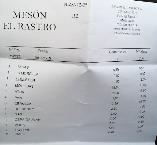 Read moreNo difficulty getting a table without a reservation. Service was a little perfunctory (the waiter was however highly apologetic) as I was a lone diner in a restaurant with a large number of large family groups. My food came all at once (ie starter and both main plates came simultaneously) and I had to wait for my desert. However, I got exactly what I was looking for in terms of food and it was delicious. Not the cheapest menu del día in the world but by no means the most expensive and everything was entirely edible. I wanted traditional Avilian food and at a decent price in a handsome room that's...