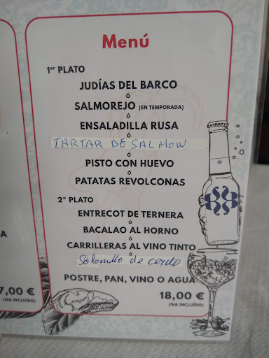 Pedimos menú de sábado por 18€ Patatas revolconas - bastante malas, frías, picantes y con mucha grasa. Entrecot con patatas - las patatas chorreando aceite, el entrecot muy duro Tarta de queso - bastante buena y es de horno.