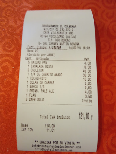 Read morePor motivos familiares que nos han obligado a desplazarnos a Ávila, llevamos comiendo a diario en esta venta desde el pasado domingo, excepto el día de navidad porque cerró por descanso. No entiendo alguna de las críticas negativas que he leído, tanto a nivel de calidad de servicio y comida, pero la que más me ha llamado la atención es la realizada respecto a la vestimenta de la camarera, la cual supongo ha debido ser escrita por una monja, sosias de la bruja de Blancanieves. Mi mujer y yo, a la que no le importa lo más mínimo como viste la mencionada señorita, que es muy educada y correcta en el servicio, opina que es el vestuario utilizado es de lo más normal. Hemos comido tanto el menú diario como a la carta en domingo y debo decir que la relación calidad precio es excelente, el precio insuperable y el servicio eficaz y rápido. Un local totalmente recomendable si lo que quieres es comer bien a un precio más que razonable. Si a uno le gusta más el lujo le recomiendo otros restaurantes como Pueden ser Bococo, Alcaravea o Molino de la Losa, y si quieres un sitio con cocina también tradicional pero algo más caros, Los Candiles o Las Murallas, pero si lo que buscas es un sitio para comer a diario, o a la carta en festivo por un precio más económico, realmente este es tu...