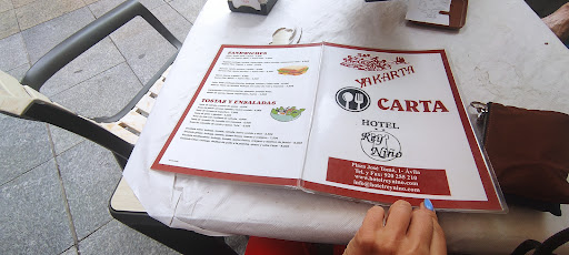 PÉSIMO, nose ni por donde empezar…Llegamos, pedimos sitio fuera en la terraza para comer cinco personas, nos insistía con que tenía que ser dentro cuando había sitio fuera, después de un rato discutiendo ya nos sentamos donde quisimos porque ni siquiera nos indicó la mesa. La carta, ofrecen menú del día por 14€ donde incluye primero, segundo y postre junto con una bebida. Por otro lado, también ofrecen platos combinados, raciones varias… Se acerca el camarero, le preguntamos por raciones y nos dice que solo ofertan menú del día. Somos dos vegetarianas así que insistimos en si hay alguna otra opción vegetariana, a lo que de malas maneras nos insiste de nuevo diciendo que solo menú. Al final pedimos todas menú, de nuevo, PENOSO. Macarrones dejan bastante que desear y el segundo plato ni comentar. Patatas frías, carne dura…y para colmo parece que se les acabo el pan en cocina. De postre una variada y larga carta para elegir, arroz con leche y natillas. Cuando las trajeron pedimos más canela y como el camarero pareció que no nos escuchó entramos dentro del restaurante a pedirla. Una vez la tenemos en la mesa, se acerca el camarero y nos llama la atención porque le ha regañado su jefa, a lo que ya nos ponemos serias y parece que nos gasta una broma que la verdad que sigo sin pillar. El trato, de nuevo, PENOSO, no sé si daría la casualidad de que nos tocaron los camareros más desagradables pero han conseguido que no...
