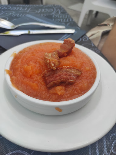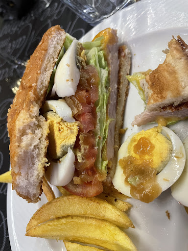 We just stopped for a quick bite as this was the only restaurant on the way to the bus station. The staff was welcoming and assured us we would get our food quickly, which we did. I will say up front that it appears they have a good value menu del día and other quality items. Unfortunately ordering a la carte is trickier and incredibly expensive. I ordered a ham and cheese sandwich which came as two square pieces of loaf bread with a single slice of ham inside with tasteless fries. The sandwich was fried in butter or oil so tasted okay, but I didn’t have time to send it back so they could complete it since it was missing half of the ingredients. Chicken wings were good and a generous portion, but between the 7 euro sandwich and 3.80 for each the small beer and the water, our bill was much higher than it should have been for what we received. Go here with time for one of their more classic dishes and your experience may be...