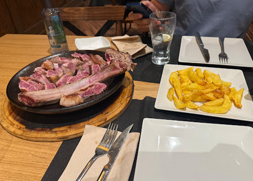 Tyche Avila was right next to the place we were staying at and after a day of walking we ended up there and we were very surprised by the quality and amount of food. The service was superb. We engaged in conversation to try something local to Avila and they did not disappoint. We had the Avila special and it was a meal for two that was 55 euro. The chuleton was cooked perfectly (1 kilo of meat) and sliced at the table. The side dishes also amazing and it included wine, coffee and dessert. Trust me there was plenty of delicious food. Highly recommended and say hi to Papico behind the counter and Luis the owner, both friendly and very...