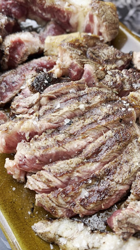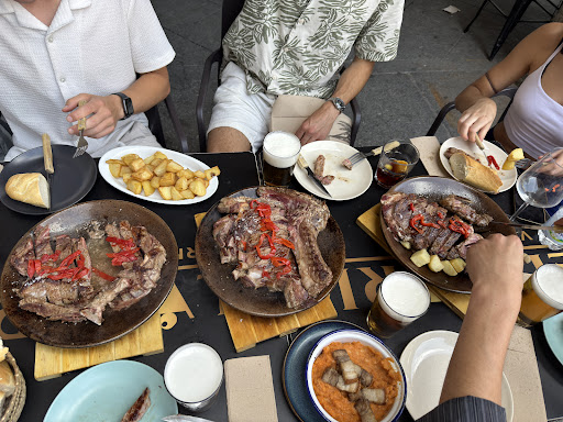 Todo estuvo a un nivel excelente: ⭐ La atención de Manuel 🍺 La cerveza tostada y su tapa 🥔 Las patatas 🥩 Y, cómo no, la joya de la corona, ese chuletón magnífico que todavía recordamos con entusiasmo.