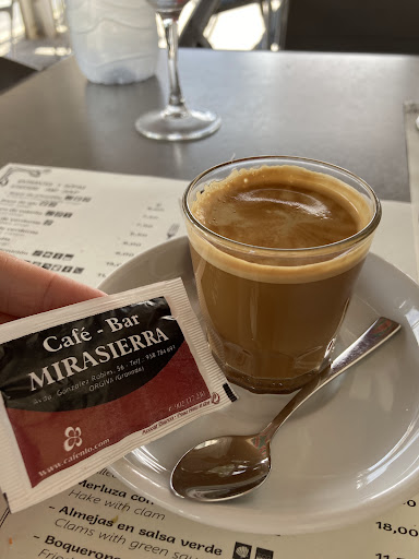 .This Mira Sierra is ok and very popular with the locals yeah BUT also extremely particular about the hours,when anything is served,so for example no change to get tostada after 12,or lunch before 14,and so on.No way be convinced otherwise here.Ive never met such an sharp attitude before.Very good location,has a set solid clientele well established.This place hasn't received enough attention,being it is placed by the former social hotspot "metal bar",that has since it's glory days gone badly downhill,bringing people here instead.These have,and always have had,good local customer crowd,cheap prices,efficient and good service,outside seating in the perfect spot just arriving to the town center.Very good place for a very early(8) breakfast or a drink...