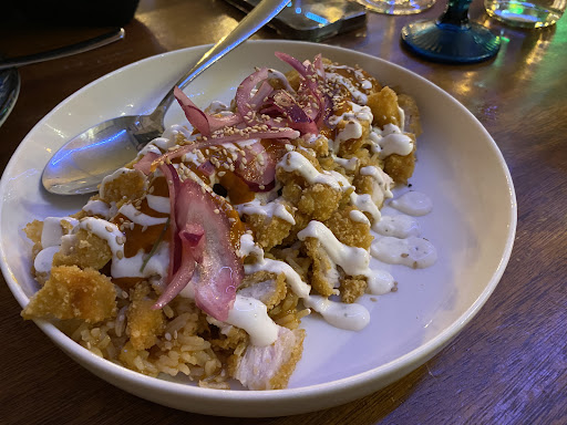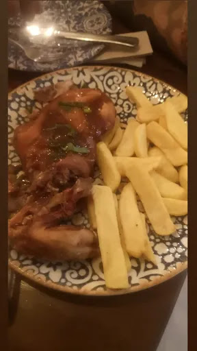 Read moreDecepcionante. Nos atiende una chica joven rubia a la cual, para empezar, le preguntamos qué tipo de cerveza tiene, ya que teníamos entendido que tienen variedad, a lo que ella se limita a decirnos la cerveza de barril y las dos normalitas, Alcázar y Mahou... Confusos decidimos tomar una alcázar. Después de un rato observando el local, vemos que de decoración tienen otros tipos de cerveza, le preguntamos si esas también están en la carta a lo que ella, esta vez tras insistir, se anima a explicarnos cuáles sí y cuales no. Para comer hay una carta bastante prometedora (venimos desde fuera a propósito) nos dejamos aconsejar y, entre otros, pedimos el que nos pareció un plato estrella: cochinillo con PATATAS AL ROMERO y demi glace, que según la chica se pide bastante. Nuestra sorpresa es el plato de la foto. Un cochinillo chicloso, con la piel blanda, acompañado de unas patatas congeladas que te pueden poner en el menú infantil de cualquier antro de carretera. De pena. La chica ni siquiera nos preguntó qué tal había estado todo, supongo que ya sabría la respuesta. Nos volvemos muy...