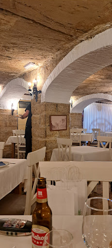 Muy buenas !! El local muy original y con historia. Diferente. Antiguo aljibe árabe y luego, refugio en la guerra civil. Te transporta a otros años. Al conocer ésto, en un principio, me chocó el estar disfrutando en un lugar donde se habrían vivido días muy difíciles, pero éso es subjetivo, claro está. El trato super agradable y muy profesional. Tanto la camarera, como los propietarios. La cocinera (propietaria, si no recuerdo mal) era un encanto. Incluso me regalaron una pieza cerámica pequeña, muy bonita, de un conocido alfarero de la zona. La comida nos pareció bastante buena de calidad y a un precio asequible. Hubo algún plato sublime. Las croquetas, el lagarto y la tarta de queso, espectaculares. Pedí un plato típico, sin preguntar por ingredientes ( lo tengo por costumbre 😅) y me trajeron Andrajos, plato que desconocía y que estaba delicioso. Para repetir, seguro....