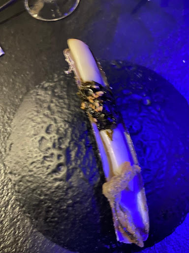 A continuación se pasa a la barra de la cocina, donde el chef se presenta y sirve tres o quatro platos de mar (sí, también son de esa tierra pero de hace unos milones de años)