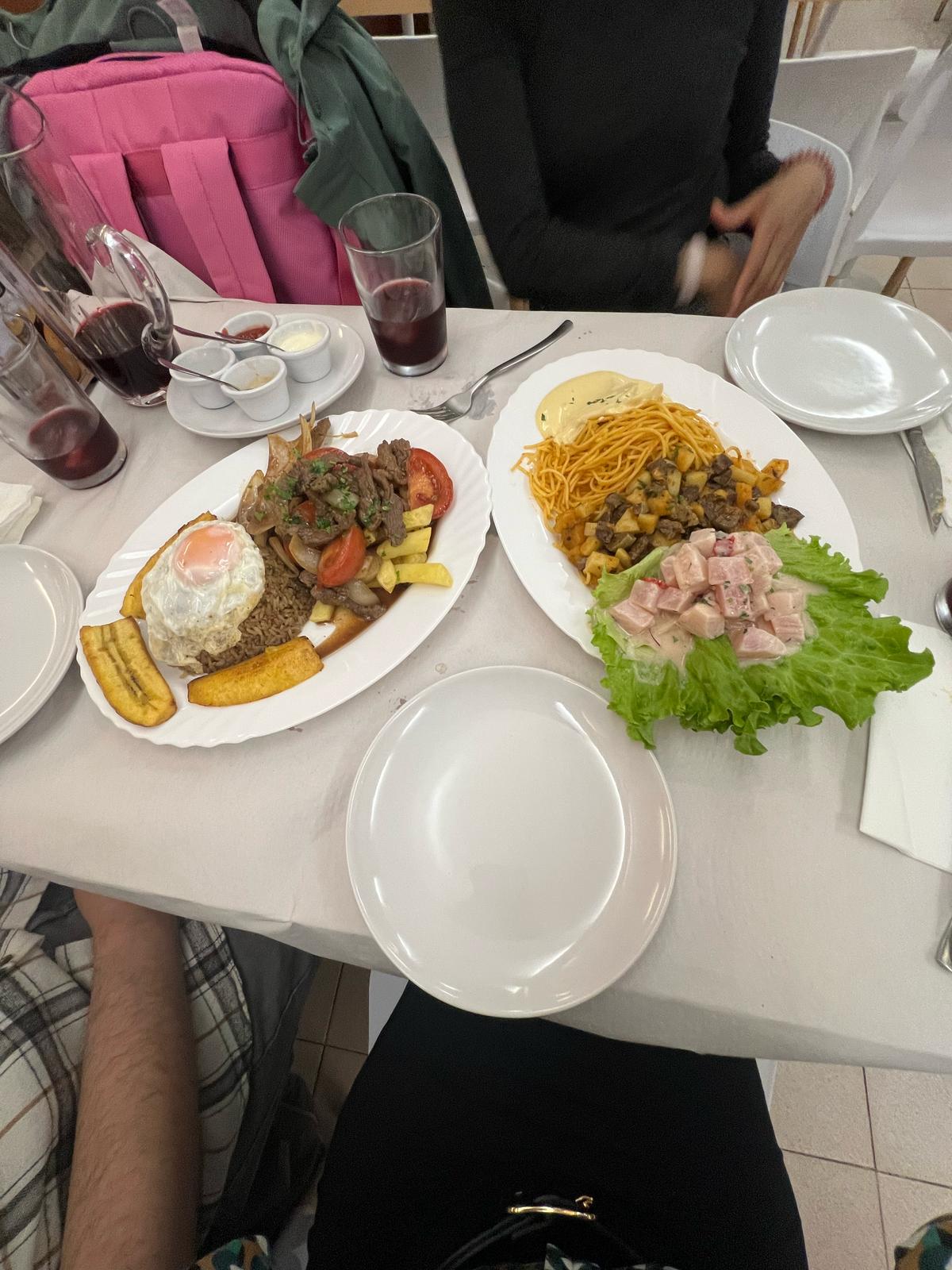 De plato fuerte pedimos el Dúo Marino, compuesto por ceviche y chicharrón de pescado. El ceviche estaba fresco, cítrico y perfectamente sazonado, con ese punto de acidez que abre el apetito. El chicharrón de pescado nos sorprendió por su fritura ligera y crujiente, sin exceso de aceite y con un sabor delicioso.