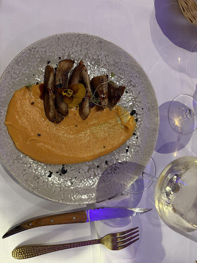Read more28-12-24 Cena para 10 personas. Se eligieron dos tipos de menús de 50€. Iniciamos con los entrantes. Las gyozas las trajeron a la mesa gritando “ menú 1” como si fuera una feria...sin traerlas en platos individuales para las personas que las habían elegido, teniendo que repartírnosla de un extremo a otro de la mesa.Estaban secas, frías. La ensaladilla del otro menú sí llegó en platos individuales, en un vaso sin más. Las croquetas, que eran comunes a los dos menús, correctas pero no ví el velo de panceta. Pasamos a los segundos...la croca ponía que era a la plancha...estaba fría, sosa, dura y traía encima una salsa blanca (no me parecía que fuera un plato recién hecho) Debo decir que cuando se lo dije a la camarera me preguntó si quería otra cosa ( pero rehusé, ya no me apetecía nada). Aunque en el menú las guarniciones del rape y la lubina eran distintas, a todos nos pareció que eran la misma elaboración de verduras. Alguna lubina tenía espinas y fué complicado verlas por la poca iluminación. Tardaron mucho en traer los postres...En el menú ponían “variado de postres” lo que se tradujo en un trocito de torrija y una porción de tarta de queso...y poco apetecibles en el emplatado.Torrija normal y tarta de queso insípida y con textura harinosa. No me pareció natural. Pedimos cafés y los camareros al traerlos ya tenían que gritarnos lo que eran para servírnoslos porque el volumen de la música ya era alto. Con lo grande que es el local, estábamos pegados a un murete de separación de ambientes, con lo cual, parte de la mesa no podía ser servida por los camareros y teníamos que poner y sacar los platos por encima de la mesa. En resumen, es la primera vez que pongo una reseña en mi vida. La comida y tiempos del servicio mal.Bueno para el que quiera beber (barra libre en la mesa) y bailar. Mis críticas son como restaurante, mala relación calidad precio. Si quiero beber voy a un pub o a un bar. Nos...