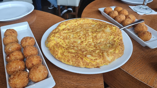 Read moreFui ayer a una cena de empresa y me parece un sitio pésimo. Estábamos tan apretados que para ir al baño se tenía que levantar toda la mesa, los camareros no te podían servir, pasaban los platos desde los extremos. La comida una bazofia y escasísima. Croquetas redondas de bechamel con sabor artificial a marisco (2 por cabeza), un plato cutre de embutido ramplón cada 4 personas (ponle que 4 lonchas por cabeza), gambones (2 ó 3 por cabeza), carrilleras de cerdo (lo más pasable pero ninguna maravilla) y de postre una tarta de queso de horno poco cocinada... Los vinos el blanco caliente e impotable y el tinto algo mejor pero cabezón cabezón. Ni trajeron cafés para todos, ni reponían pan... Una cutrería tremenda. Y todo esto por 28 eur/persona... Éramos 37 más el resto de cenas... Vamos que hacen el negocio estafando...