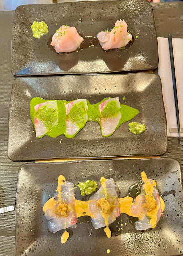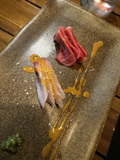 La comida: te tiene que gustar 100% el japonés para venir aquí. El menú degustación estuvo bien, tenía bastantes variedades de nigiris, a destacar el que tenía guanciale. Las ensaladilla estaba muy buena al igual que el postre. El Sashimi de lubina no nos terminó de gustar.