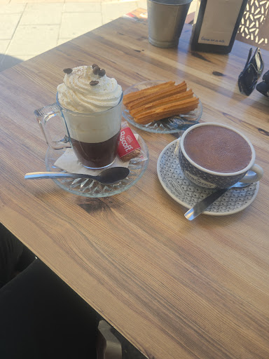 Read morePanadería degustación, excelente para merendar o desayunar, zumo de naranja natural, tostadas con aceite, tomate, mantequilla, mermeladas, churros, bollería o bizcochos, café, infusiones variadas, tés fríos tipo frapé, batidos de frutas, leche y leche sin lactosa. El café o infusión lo acompañan con una galletita o magdalena pequeña, y si se pide refrescos, agua o cerveza te ponen un cuenco con patatas fritas #Bonillaalavista Panes variados. No sirven comidas. El local es muy acogedor y tiene un rincón para que jueguen los niños pequeños. En el exterior tiene terraza resguardada para los fumadores y con vistas al atardecer. Cierra al mediodía y de noche a las 22 horas. Me olvidaba!!...
