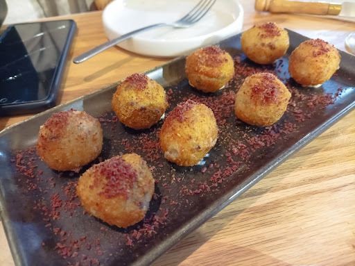Read moreRestaurante de tapas pequeñas, caras y muy ricas. Hemos pedido solamente la ensaladilla rusa y las croquetas de cecina. Las dos estaban deliciosas. La ensaladilla no es que tuviese la mejor textura del mundo, pero tenía muy buen sabor y los deditos de atún marinado estaban muy buenos. Las croquetas eran cremosas. En mi opinión tenían un poquitín de textura gelatinosa pero sin pasarse. No estoy muy seguro. En cualquier caso me han gustado mucho y no es esa textura gelatinosa que tienen en otros sitios. Nos han preguntado si queríamos pan y nos han servido una cestita de pan abundante, rico y acompañado de un poco de aceite. El aceite era, a mí parecer, normal, pero se agradece. El pan estaba tan bueno que aunque era bastante, nos lo comimos todo. El camarero ha sido muy correcto y amable. El precio, al final, 15€ por persona para un par de tapas no muy grandes, pero en mi opinión, la...