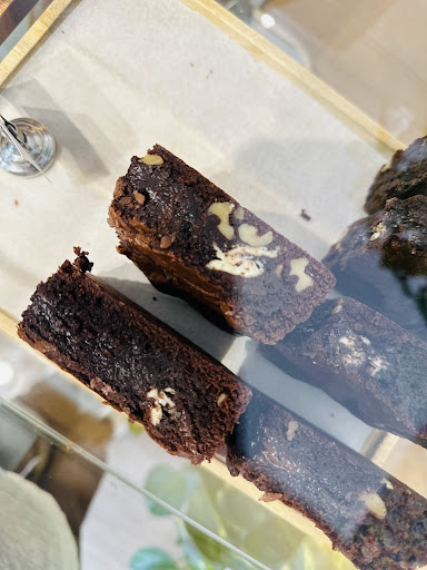 El local esta muy bien aprovechado. En escasos 20 metros cuadrados tienen, ademas de la citada repostería casera, chocolates “Bean to Bar” de un proyecto coruñés, Essenz O Cacao,todo el catálogo de cafés en grano tostados por los madrileños “Hola Coffee” con su consiguiente cartel explicativo, una zona de artículos de home barista (V60, moledoras manuales) e incluso seleccion de revistas.