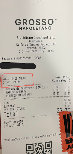 Read moreHe estado en el grosso napolitano el dia 30 de abril a las 21:10 había mesas suficientes, le preguntamos al camarero y nos dijo que nos sentasemos en cualquiera, al segundo nos vino a preguntar que queríamos beber nos lo trajo rápido nos quedamos mirando el qr nos pregunto si ya sabíamos pedimos nos trajeron la cena en un tiempo prudente y hasta ese momento todo perfecto ,cuando acabamos estábamos esperando para pedir el postre tiramisu que están muy buenos ,y aquí viene lo surrealista llega la chica que llevaba wl datáfono para cobrar y nos dice que si habíamos pedido la cuenta y le decimos que no se arrima a la mesa que teníamos al lado y le da el ticket ellos pagan ,luego se va a la otra mesa que también habían acabado y les da otro ticket pagan y se acerca a nuestra mesa con otro ticket en la mano y nos dice es que os traía la cuenta le digo bueno pues íbamos a pedir postre pero no te preocupes que ya no lo pedimos te pagamos ya que tenía el ticket en la mesa .Nos marchamos no sin antes decirle lo que pensaba de lo mal que lo habían echo ella dijo que sus compañeros le mandaron llevar todos los ticket eran las 21: 50 le pregunté a que hora cerraban me dijo que alas 11:00 . Quiero que algún responsable del establecimiento sepa lo que esta pasando en su local, nunca había vivido algo así cuando hay gente esperando es entendible que metan prisa pero había 3 mesas ocupadas en terrraza que es donde estábamos y faltaba más de 1 hora...