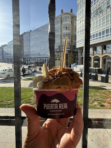 Read moreA pesar de estar en una zona tan privilegiada, justo a la entrada de la Plaza Mayor de A Coruña, desde lejos su fachada no es que grite "¡Ey, aquí hay helado!" Pero precisamente por eso tiene un ambiente más tranquilo y relajado, al contrario que el resto de heladerías abarrotadas de la zona.