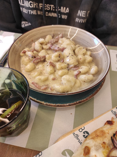 Read moreFuimos a comer 3 personas. El local no es grande, pero está bien repartido. Todo limpio y ordenado. Pedimos 2 baos de torrezno, unos fingers de pollo, una pizza carbonara, unos ñoquis carbonara y un bol. Los baos, estaban buenos, pero no es un torrezno, es una tira de bacon, fue bastante chasco. Los fingers estaban bien, una ración bastante abundante. Los noquis estaban sabrosos, pero sin ser nada espectacular. La pizza bien, si te gustan de masa gruesa, como a mi, de buen tamaño, puede ser para 2 personas. El bol era abundante, pero no estaba muy allá. En general, la comida es buena en mi opinión. El servicio, todo hay que decirlo, nos pareció muy malo. Fué educado en todo momento, pero despues de sentarnos, salió a hablar con una persona (amiga o familiar) y tardó como 10 minutos en volver y tomarnos nota. Los platos salieron rápido, pero cuando acabamos, queriamos pedir postre, pero tras esperar más de 20 minutos, en los que nos ignoró completamente, así q cuando por fin vino, pedimos la cuenta y nos fuimos. Sinceramente, yo no voy a repetir. Unos 60€ para 3 personas, con bebidas y sin...