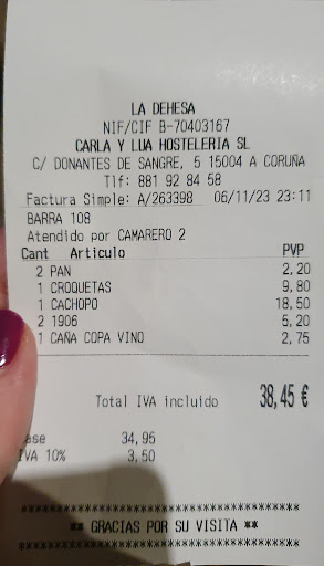 Read moreLe pongo una estrella porque no se puede poner menos. Atención pésima. Nos ofrecen un plato que luego nos dicen que ya no tienen y a los 10 min. el mismo camarero le está ofrenciendo el mismo plato a la mesa de al lado. Nos recomiendan cachopo porque es abundante y nos comemos la mitad. Nos preguntan si nos ponen el resto para llevar y le decimos que sí. Lo que sobró era comida suficiente para 1 persona. Cansados de esperar por la cuenta vamos a pagar a la barra y cuando le preguntamos por el tupper con el medio cachopo sobrante nos dice que entendió que no lo queríamos. 18,50€ de cachopo del que sólo nos comimos mitad pensando que nos pondríamos llevar el resto para casa. No recomiendo ir a este...
