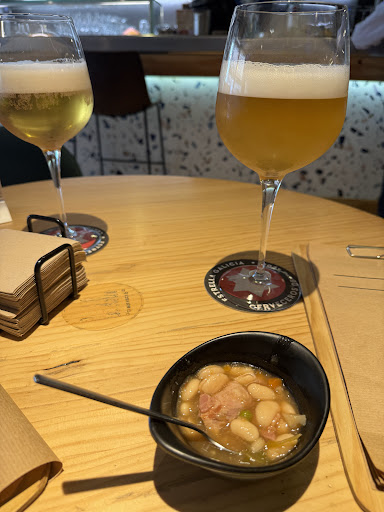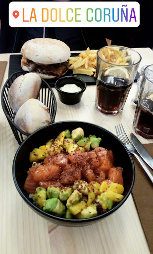 Se come espectacular. Dimos con él de casualidad porque el restaurante al que teníamos planeado ir estaba cerrado y salimos encantados. Cuando llegamos estaba tan lleno que había gente comiendo en la barra e incluso en las mesas de fuera (a principios de febrero, con el frío que hacía). Como hay un comedor dentro que no se veía desde la puerta decidimos preguntar si había sitio, por si acaso, pero ya contando acabar en el kebab que hay al lado. La atención fue estupenda. La camarera (una chica de pelo cortito muy maja) nos dice que no hay sitio, pero que al ser sólo dos podríamos pasar rápido porque había varias mesas pequeñas a punto de terminar y el resto de gente que estaba esperando venían en grupos mayores. Nos quedamos y nos ofrecieron un pincho de callos mientras esperábamos, además de darnos la carta por si queríamos ir eligiendo. Unos 10 minutos después la misma chica nos comentó que acababa de librarse una mesa en la zona de cafetería y nos preguntó, muy atenta, si nos parecía bien esa o preferíamos esperar a que se librara otra en el comedor, que es más tranquilo y hay menos ruido. Nos quedamos en esa. Casi al segundo de sentarnos vino otra camarera a preguntarnos si ya habíamos decidido en la barra o necesitábamos más tiendo y ya nos atendió al momento. El tiempo de espera por la comida no me pareció demasiado en relación con la cantidad de gente que había y mientras esperabamos vino la primera camarera a decirnos que se había librado una mesa más grande, por si queríamos cambiarnos. La carta era amplia y muy variada. Además de comidas tienen desayunos, meriendas y brunchs. Y dentro de las comidas había tapas y raciones, hamburguesas, bocadillos, sándwiches, ensaladas, pizzas y platos de pasta... Nos costó bastante elegir porque todo tenía una pinta espectacular y no eran los platos básicos tipo "ensalada mixta" o "hamburguesa completa". Al final mi novio se decidió por una hamburguesa que llevaba, entre otras cosas, aros de cebolla y salsa de Jack Daniels y yo por el Poke de salmón y aguacate. Las raciones eran muy abundante y estaban buenísimas. Me quedé con ganas de probar los porque tenían muy buena pinta, pero no podíamos más. Pagamos 22€, que me pareció un precio más que correcto para lo bien que comimos. Sin...