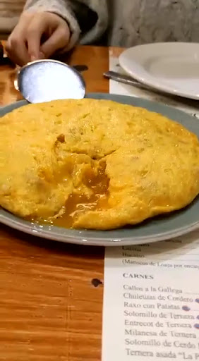 Read moreThis is my favourite place to eat in Coruña. My boyfriend’s family has introduced me to this restaurant and we’ve been visiting since 6 years. Everytime we visit the city, we always make time to eat their “tortilla de patata”. It is amazing. When it’s the season, pimientos (fried peppers) goes so well with it too. Their meat is also top!! (ternera asada) I’ve tried croquetas as well. All delicious. The location, the atmosphere, everything serves to your experience. Definitely recommended! You can sit in the outside section in summer to get a good view of the main square. I leave some videos of the satisfying first cut of the...