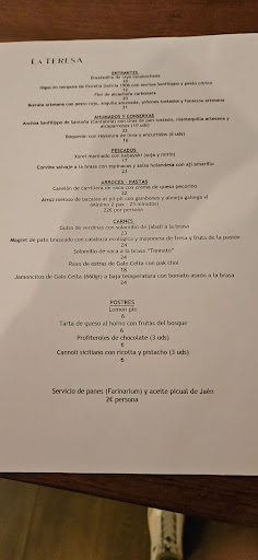 Ojo, ya no tienen ninguno de los platos que muestra Google en la pregunta de recomendaciones porque se corresponden a la antigua La Teresa, por eso adjunto foto de la carta, que pienso irán variando en función de la disponibilidad de los productos de temporada. Contamos ahora con una nueva La Teresa, mucho mejor que...