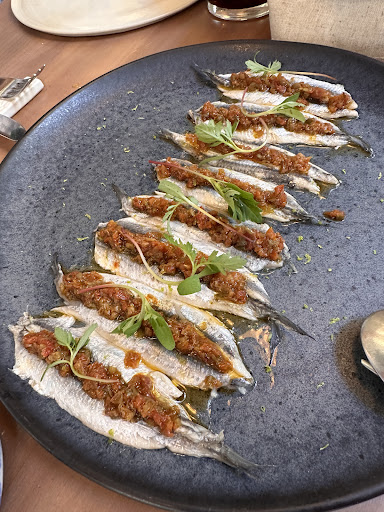 Read moreLos platos son muy ricos. Al chef le doy un 10, excepto en el solomillo de jabalí que estaba muy seco. El servicio es bueno. Éramos 8 y nos tocó delante de la barra/cocina. O estás mirando a una pared o a la barra que está a 1 metro y estresa un poco ver a los camareros pasando pegados cada 5 segundos. Lo malo es el precio. Se les ha ido la mano. Te cobran 20€ por un tomate aliñado y con una salsa (muy rico) y se quedan tan anchos. Es un tomate y estás en Coruña, no en el centro de Madrid!! Pues el resto de platos (muy pequeños) más caros. Si no fuese por el precio desmedido y por las estrecheces del local les daría 5 estrellas en todo.